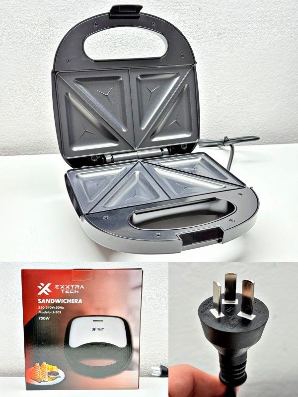 ⚡ Potencia: 750W 🔲 Placas antiadherentes para fácil limpieza 🍞 2 espacios para 4 sándwiches triangulares 💡 Indicador luminoso de encendido 🖤 Diseño compacto y moderno ✨ Ideal para preparar sándwiches rápidos, crocantes y deliciosos en minutos.